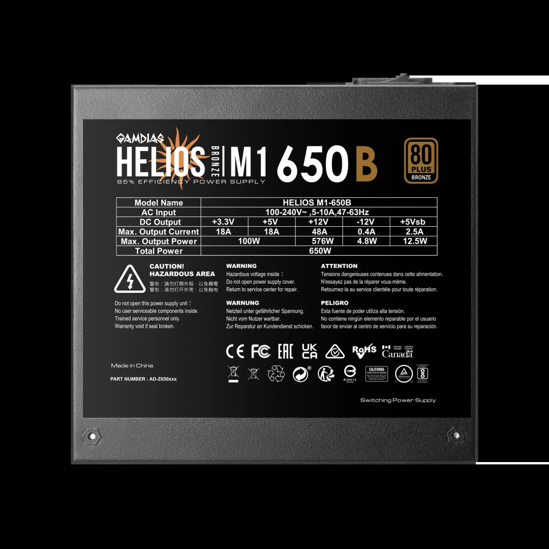 Model: Napajanje 650W Gamdias Helios M1-650B Bronze